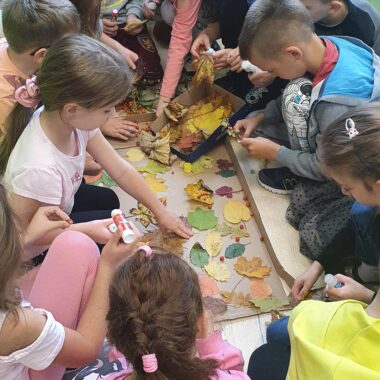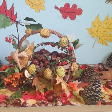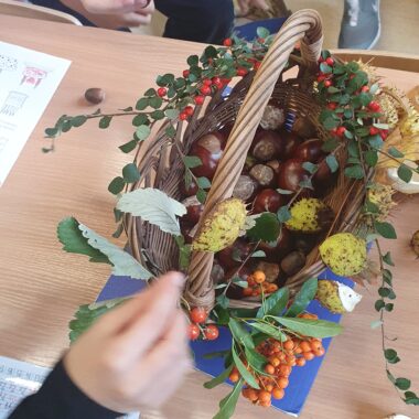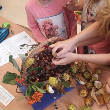 Wraz z rozpoczęciem jesieni uczniowie kl.1a postanowili wspólnie założyć swój klasowy kącik przyrodniczy. Pierwszaki z wielkim zaangażowaniem przynieśli różne skarby: kasztany, szyszki, żołędzie czy liście. Trzeba przyznać, że uczniowie wykazali się dużą pomysłowością.