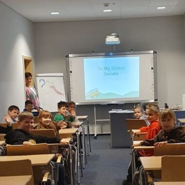 Uczniowie klasy 1a wybrali się dziś na ciekawe zajęcia zatytułowane „To my- dzieci świata”, które odbyły się w Miejskiej Bibliotece Publicznej w Oświęcimiu Galeria Książki.  Podczas spotkania poznaliśmy wiele ciekawostek o różnych krajach i kulturach oraz dowiedzieliśmy się, gdzie na mapie świata leżą poszczególne kontynenty. Zajęcia były bardzo interesujące i pouczające, a przy okazji każdy z nas miło spędził czas, ucząc się przez zabawę.