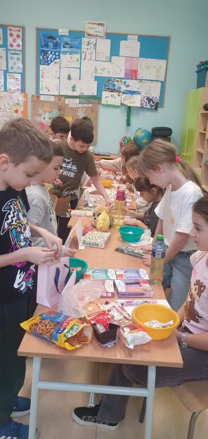 Podczas zajęć matematyki klasa 1a zamieniła naszą salę lekcyjną w sklep. Celem zajęć było utrwalenie umiejętności dodawania i odejmowania, a także rozwijanie praktycznych umiejętności matematycznych w codziennych sytuacjach. Uczniowie z ogromnym zaangażowaniem wcielili się w role sprzedawców i klientów. W klasie powstały stoiska: z łakociami, zabawkami, książkami, pieczywem oraz warzywami i owocami.  Każdy uczeń miał okazję dokonywać zakupów, odczytywać ceny, liczyć należność oraz obliczać resztę.  Nauka poprzez zabawę sprawiła uczniom wiele radości.