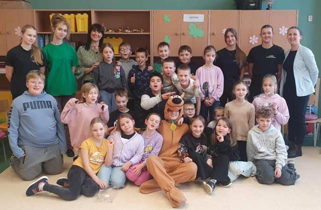 Dziękujemy Uczennicom klasy III mundurowej z Powiatowego Zespołu Szkół nr 2 w Pszczynie: Ani Bąk, Justynie Waleczek, Michalinie Żur, Julii Wojtak, Julii Folek oraz ich opiekunowi Pani Alicji Chrapkiewicz za ciekawe przeprowadzone warsztaty z pierwszej pomocy, Scooby – Doo jesteś najlepszy! Czekamy na powtórkę.