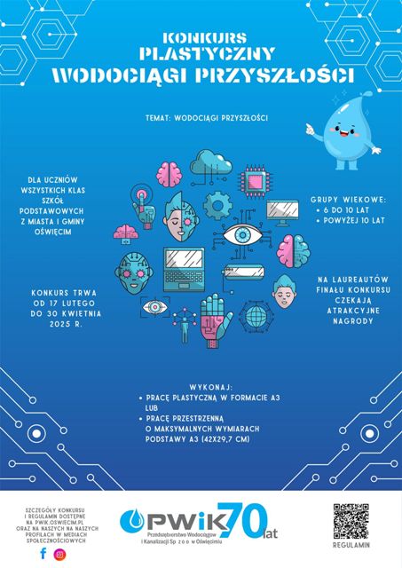 Zapraszamy do wzięcia udziału w konkursie „Wodociągi przyszłości”! Z okazji 70-lecia Przedsiębiorstwa Wodociągów i Kanalizacji Sp. z o.o. w Oświęcimiu zapraszamy uczniów naszej szkoły do udziału w konkursie artystycznym. Wyobraźcie sobie, jak mogłyby wyglądać wodociągi Oświęcimia za kolejne 70 lat! Temat konkursu: „Wodociągi przyszłości” – pokażcie ,jak wyobrażacie sobie nowoczesne technologie oczyszczania wody, budynki czy […]