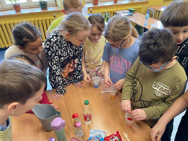 24.02.2025r. Klasa 2a na zajęciach przeprowadziła kilka ciekawych eksperymentów, które pomogły lepiej zrozumieć różne zjawiska przyrodnicze i chemiczne. Uczniowie wykonali cztery doświadczenia: Deszczowa chmura, Kolorowa tęcza, Magiczne balony oraz Gumowe jajko. Dzięki tym doświadczeniom dowiedzieli się: • Jak powstaje deszcz. • Jak mieszają się kolory. • Jakie gazy mogą nadmuchać balon. • Jak kwas działa […]