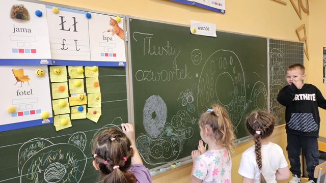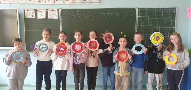 Na zajęciach kółka plastycznego, z okazji Tłustego Czwartku, uczniowie wykonali kolorowe donaty z posypką. Wykorzystali różnorodne materiały plastyczne, aby stworzyć kreatywne, kolorowe dzieła, które nawiązywały do tradycji tego dnia.
