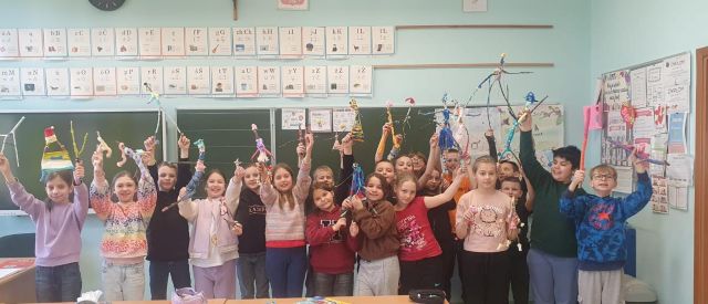 Na zajęciach techniczno-plastycznych uczniowie klasy 3 wykonywali swoje własne Patyczaki- Cudaki.  Każdy z nich miał okazję stworzyć unikalną postać ozdabiając ją według własnego pomysłu. Dodatkowo dzieci wybierały imiona dla swoich stworków, co pozwoliło im na jeszcze większą kreatywność. Zabawa była świetna a uczniowie bardzo zaangażowani ciesząc się twórczym procesem i efektami swojej pracy.