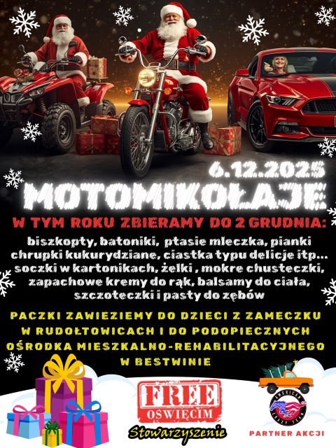 Szkolne Koło Wolontariatu „ZŁOTA TRÓJKA” organizuje zbiórkę dla Stowarzyszenia Grupa Motocyklowa FREE OŚWIĘCIM. Zbieramy słodycze, soczki w kartonikach, mokre chusteczki, kremy do rąk, balsamy do ciała, szczoteczki i pasty do zębów. W ramach akcji mikołajowej MotoMikołaje przejadą przez Oświęcim i zawiozą paczki mikołajowe dla Specjalnego Ośrodka Edukacyjno-Leczniczo-Rehabilitacyjnego dla Dzieci Niewidomych i Niedowidzących w Rudołtowicach i […]