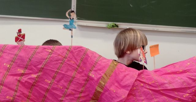 Zaangażowani uczniowie klasy czwartej samodzielnie i z dużą kreatywnością przygotowali inscenizacje baśni znanych baśniopisarzy.