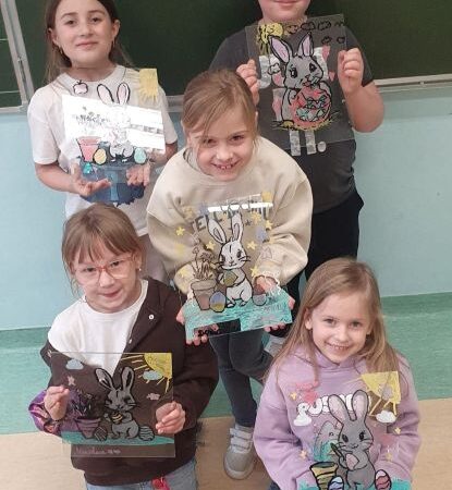 Dziś na zajęciach kółka plastycznego uczniowie malowali na szkle. Ta technika coraz bardziej podoba się naszym małym artystom. Efektem dzisiejszych działań są przepiękne, kolorowe wielkanocne zajączki, które z pewnością wprowadzą świąteczny nastrój.