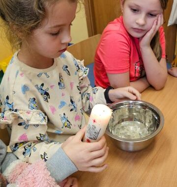 W ostatni piątek uczniowie klasy II integrowali się w ramach klasowych andrzejek. Dzieci pracowały w grupach, przebijały serduszka z nazwami zawodów szpilkami, aby dowiedzieć się kim zostaną w przyszłości, następnie każdy miał okazję wlać wosk do naczynia z wodą i doszukiwać się jego znaczenia w zastygłej plamce. Zabawa w grupach była nie tylko okazją do świętowania, ale również do nauki współpracy i cierpliwości w oczekiwaniu na swoją kolej.