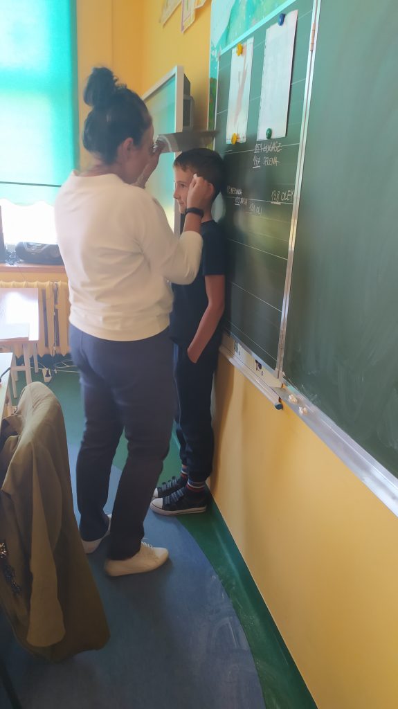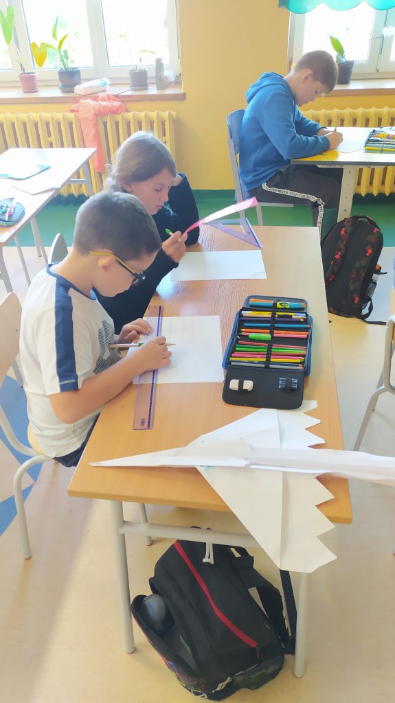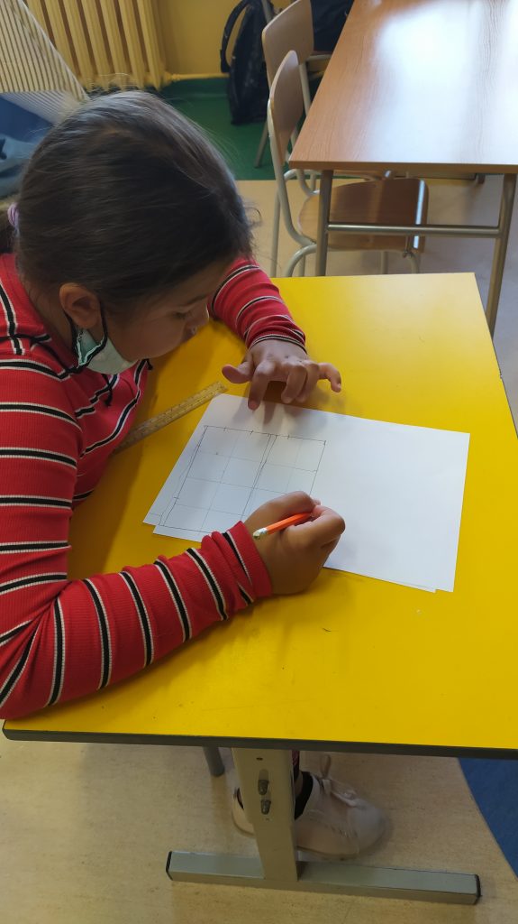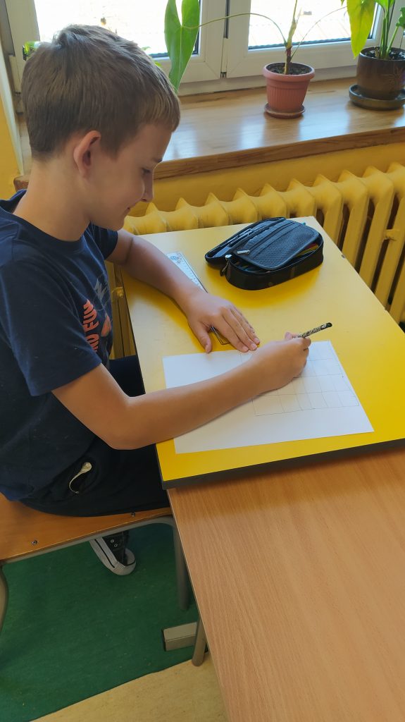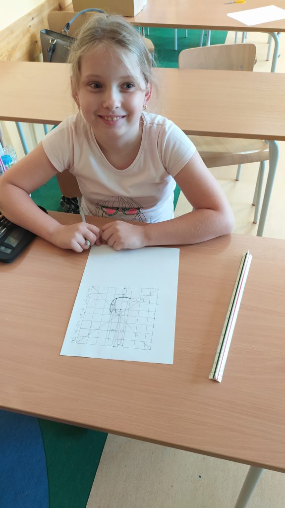 Dzieci zostały zmierzone, a później na kartce A4 rysowały kwadrat o boku równym danemu wzrostowi, w sakli 1:10.