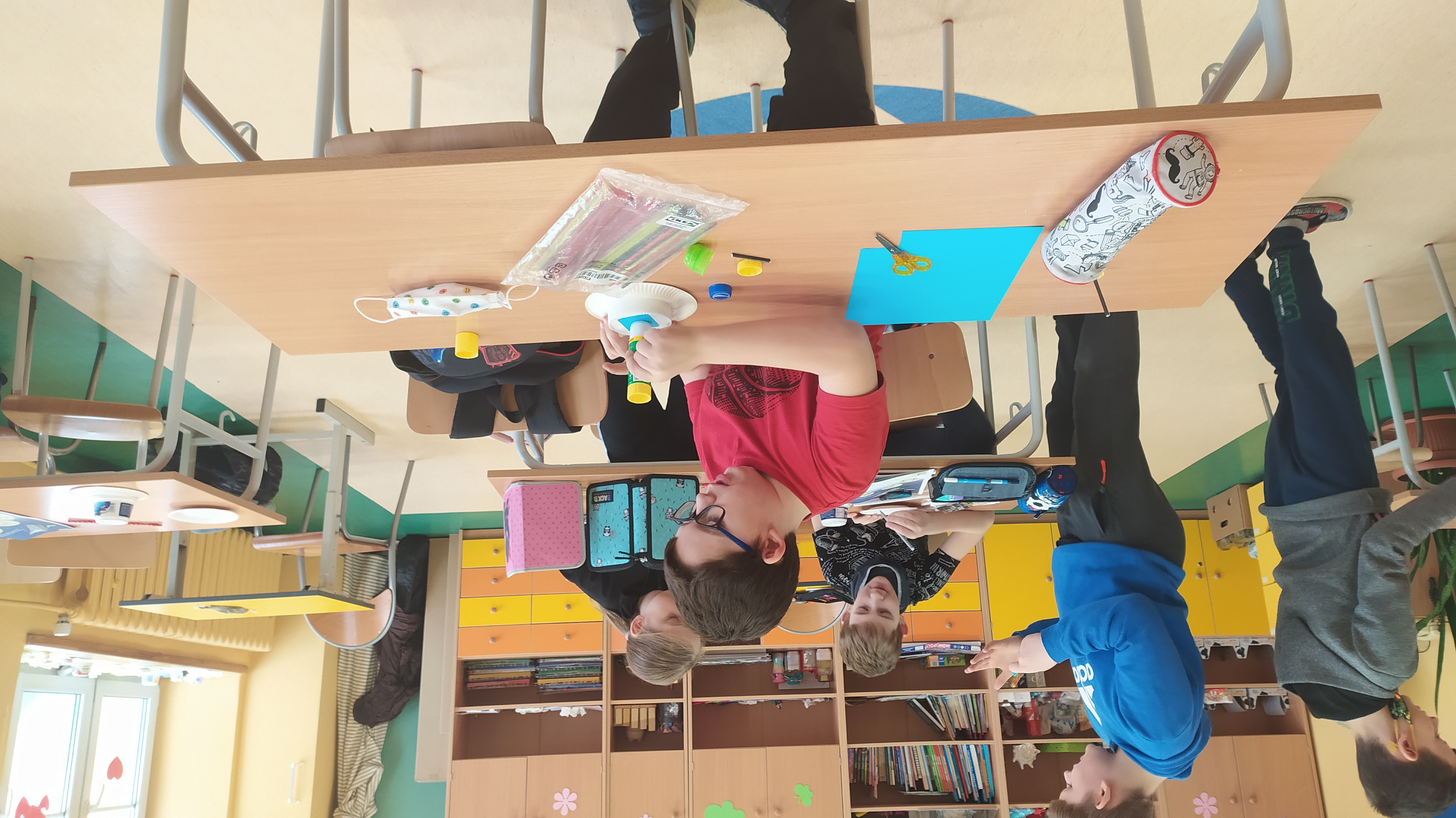 Zajęcia techniczne zawsze są bardzo ciekawe. Tym razem trzecioklasiści mając do wykorzystania: tekturowe talerzyki, jednorazowe opakowania, nakrętki, rurki do napojów, zszywacz oraz nożyczki uruchomili swoją wyobraźnię i konstruowali pojazdy kosmiczne.