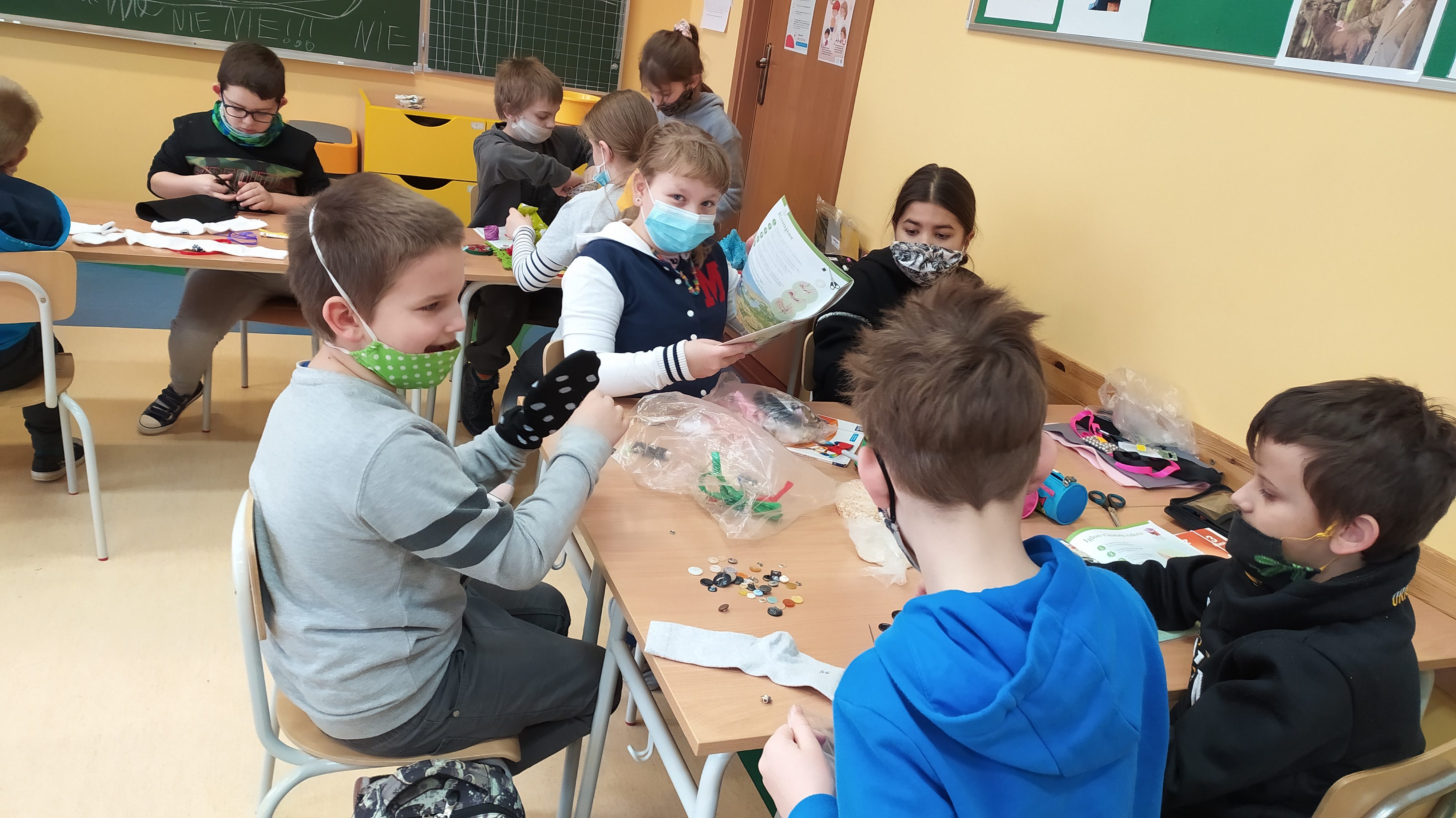 W dniu 2 lutego 2021r. podczas zajęć technicznych artyści z klasy trzeciej tworzyli bakterię Skarpetollę. Do jej wykonania potrzebne były: skarpetki, igła, mulina, ozdoby, no i oczywiście umiejętności do szycia… A o to nasze bakterie: