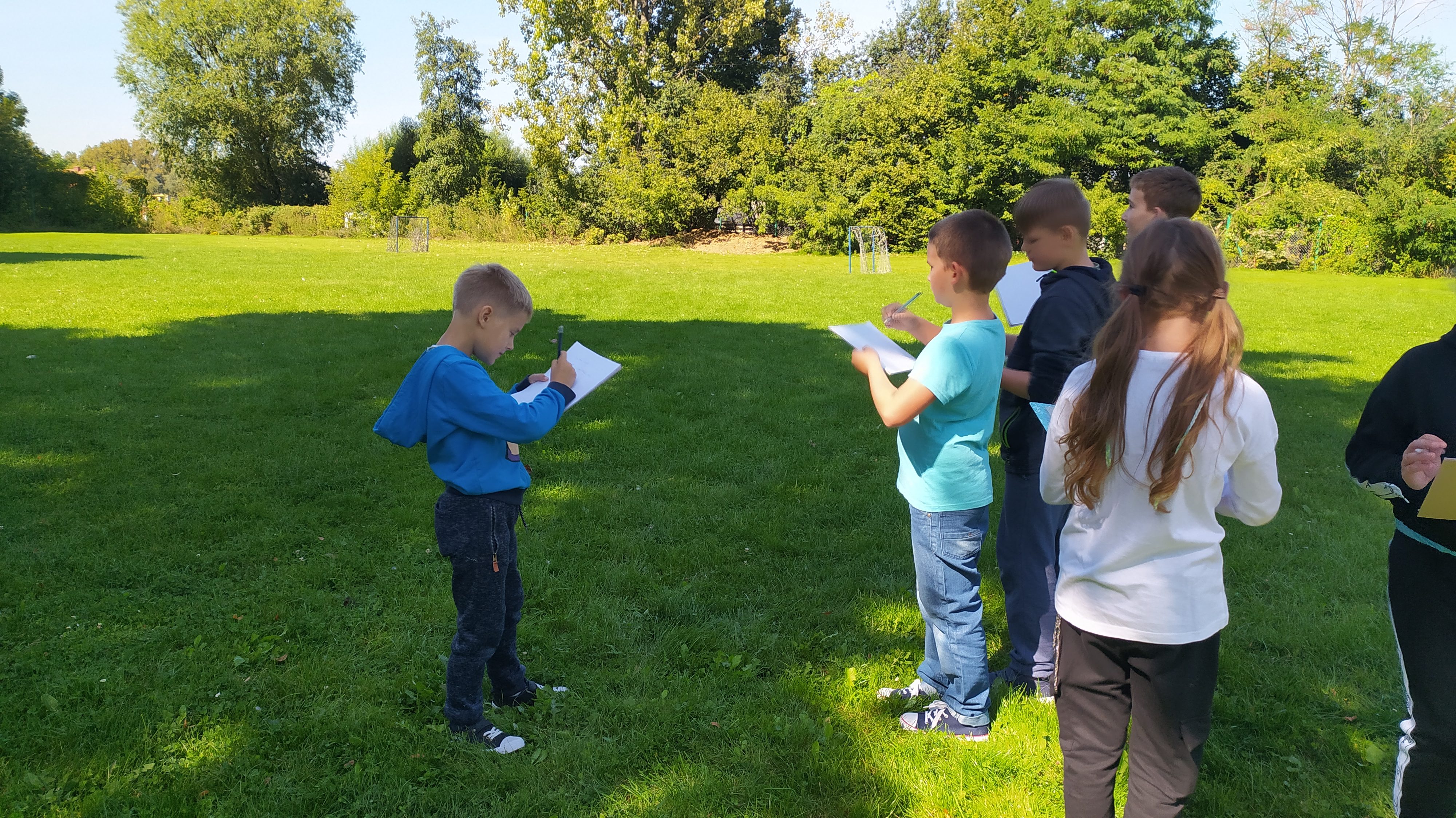 Zajęcia nr 2: ,,Nasze otoczenie” Termin: 11 września 2020r. Po długiej przerwie kontynuujemy zajęcia na które z utęsknieniem czekaliśmy. Z tą różnicą, że teraz jesteśmy już w klasie trzeciej. Wybraliśmy się na spacer badawczy na zielone boisko szkolne, ponieważ dzieci uznały je jako najbardziej atrakcyjne. Uczniowie badali wybrany teren zapisując zaobserwowane szczegóły dotyczące miejsca: kształty, […]