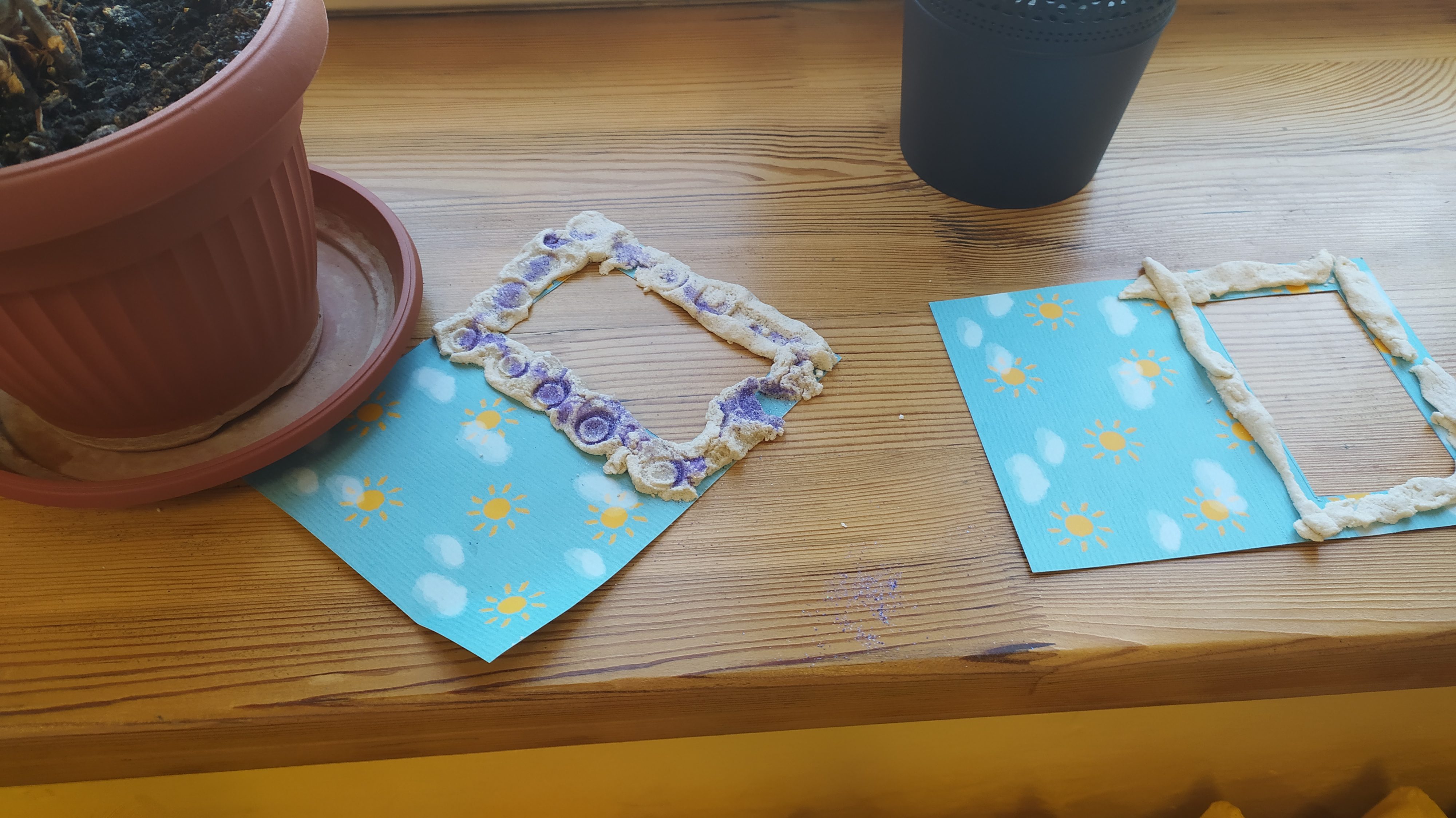 W dniu 23 września 2020r. uczniowie klasy trzeciej wykonali ramki na zdjęcia. Nie byłoby w tym nic wyjątkowego, gdyby nie to, że  tworzono je z masy solnej. Dzieci samodzielnie dobierały odpowiedni wymiar i  ozdabiały ramkę wg. własnego pomysłu oraz pamiątek przywiezionych z  wakacji.