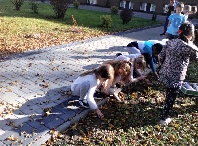,,SADZIMY TULIPANY” 22 października 2019r. Piękna jesienna pogoda pozwoliła naszym uczniom wziąć udział w akcji sadzenia tulipanów. Dzieci stały się ogrodnikami i przed szkołą posadziły wspólnie 100 cebulek tulipanów. Uczniowie lubią kwiaty i potrafią o nie dbać, dlatego teraz z niecierpliwością będą oczekiwać efektów swojej pracy.