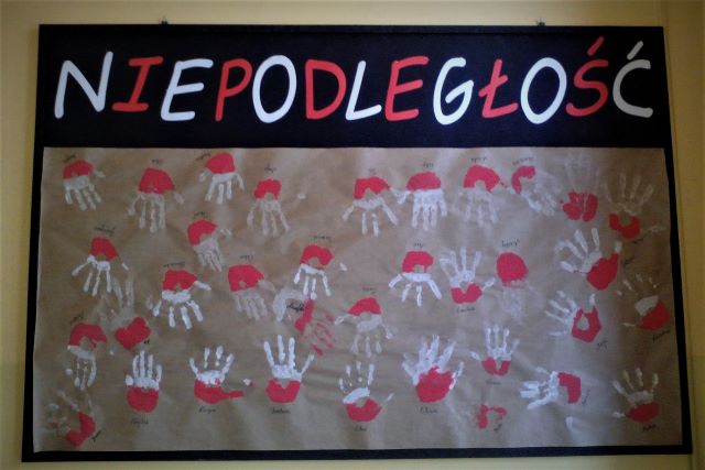 11 LISTOPADA 2019r. 101 rocznica odzyskania przez Polskę Niepodległości W dniu 8 listopada 2019r. uczniowie klas I-III wzięli udział we wspólnym śpiewaniu pieśni patriotycznych wraz z uczniami oświęcimskich szkół. Uczniowie przygotowali również gazetkę w formie odciśniętych dłoni w barwach biało-czerwonych. W dniu 11 listopada 2019r. delegacja społeczności szkolnej wzięła udział w miejskich uroczystościach rocznicowych.
