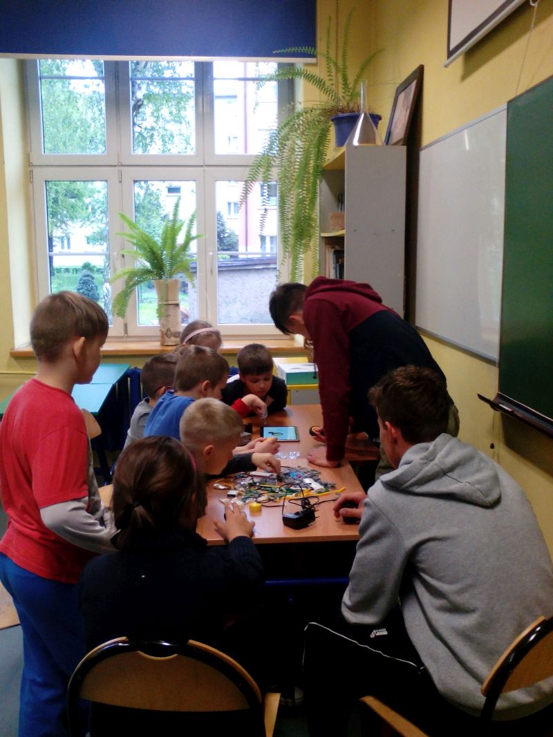 Klasa pierwsza i druga otrzymała po dwa roboty do klasy, które wykorzystuje podczas codziennych lekcji. Gimnazjaliści złożyli z licznych elementów roboty, które dzieci same programują. Uczniowie mają bardzo dużo radości ze swoich nowych konstrukcji, które ,,słuchają się” swoich programistów, a nawet tańczą… Marta Karolczuk