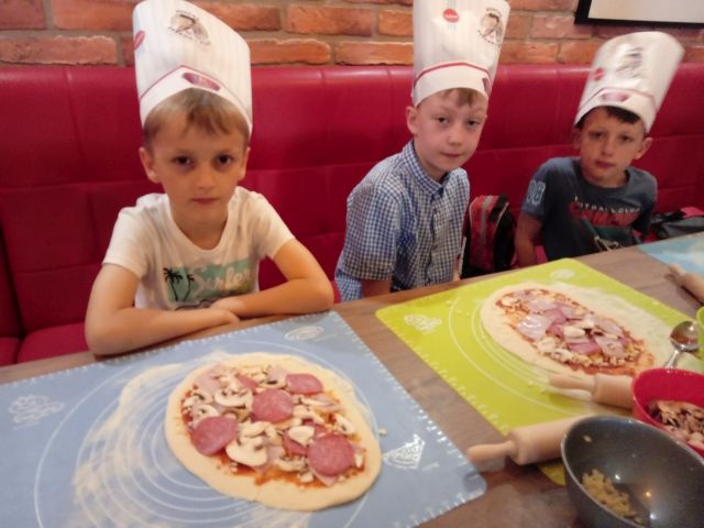 W dniu 4 czerwca uczniowie z klasy IIa wzięli udział w zajęciach kulinarnych w Pizzerni „Da Grasso”. Uczniowie ubrani w czapki kucharskie robili swoje pizze, nakładając ulubione składniki. Po upieczeniu pizzy odbyła się wspólna uczta. Na zakończenie warsztatów dzieci otrzymały dyplomy wspaniałego kucharza. Danuta Chmura