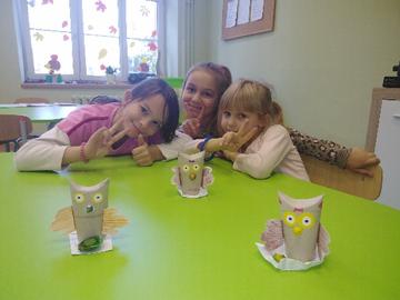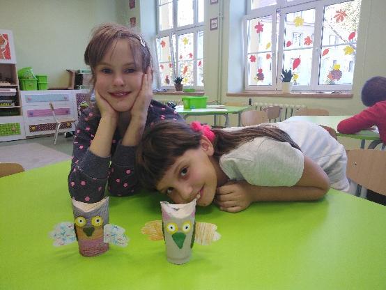 Nasi uczniowie przekonali się na zajęciach świetlicowych, że z nikomu niepotrzebnych rolek po papierze toaletowym można wyczarować wesołe i kolorowe sowy.