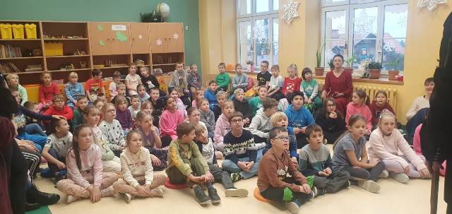 Uczestniczący w spotkaniu uczniowie klas młodszych dowiedzieli się na czym polega praca górnika. Pan Andrzej ciekawie i interesująco opowiadał o codziennej pracy i zagrożeniach na jakie narażeni są górnicy. Dzieci miały możliwość przyjrzeć się z bliska odznaczeniom, które górnicy otrzymują za długoletnią i oddaną pracę, jak i całemu górniczemu wyposażeniu. Dowiedzieli się, że górnicze czako, czyli nakrycie głowy to galowa czapka. Gość przybliżył także uczniom wizerunek patronki górników, opowiedział o tradycji Świętej Barbary i tradycjach związanych z Barbórką.