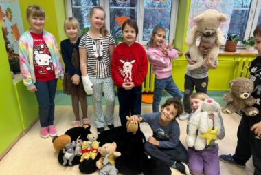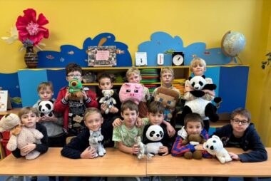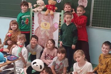 Dzisiejszy dzień upłynął nam pod znakiem uśmiechu, dobrej zabawy i… oczywiście pluszowych misiów! Uczniowie klas 1–3 wzięli udział w wielu radosnych aktywnościach związanych z obchodami Dnia Pluszowego Misia. Były zabawy ruchowe, prace plastyczne, czytanie opowiadań o misiach oraz rozmowy o naszych ulubionych pluszowych przyjaciołach. Dzieci poznały również historię pierwszego misia, dowiadując się, skąd wzięła się tradycja tworzenia pluszowych zabawek, które od lat towarzyszą kolejnym pokoleniom. Dodatkową atrakcją było wyjątkowe przygotowanie uczennic z klasy 6 — Antoniny i Julii, które stworzyły dla młodszych kolegów i koleżanek quiz, ciekawostki o misiach oraz puzzle do kolorowania z ich wizerunkiem. To była fantastyczna niespodzianka, która bardzo spodobała się dzieciom! To był wyjątkowo ciepły i pełen uśmiechu dzień!