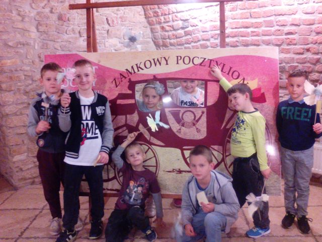 W dniu 30 października 2018r. uczniowie klasy pierwszej wzięli udział w warsztatach, które odbyły się w Muzeum Zamek w Oświęcimiu. Na początku dzieci dowiedziały się jak dawniej wysyłano listy i komunikowano się ze sobą. W dalszej części uczniowie wykonali własne gołębie pocztowe. Dzieci miały okazję również do zwiedzenia wystawy czasowej ,,Ludzie listy piszą…200 lat poczty w Oświęcimiu”, gdzie zobaczyli dawne stemple, znaczki, listy, mundury listonoszy, aparaty telefoniczne oraz skrzynki pocztowe.