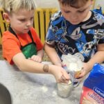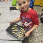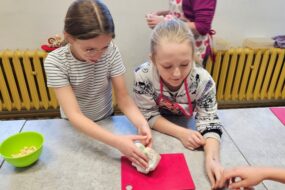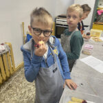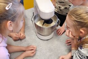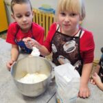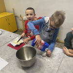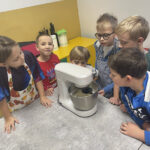 6 listopada pierwszaki przygotowały imprezowe ciasteczka „Paluchy wiedźmy”. W trakcie zajęć dzieci zapoznały się z przepisem, przygotowały składniki na ciasto, formowały ciasteczka i niecierpliwie czekały na ich upieczenie. Było „strasznie” wesoło i pachnąco.