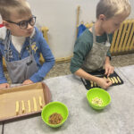 Kolejny tydzień, kolejne smakołyki. Druga grupa dzieci przygotowała ciasteczka z migdałami tzw. paluchy wiedźmy. Chłopcy wykonali przydzielone zadania sprawnie i z dużym zapałem.