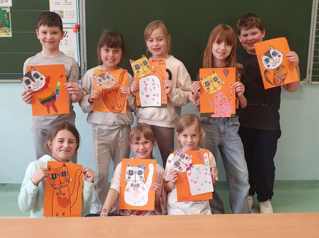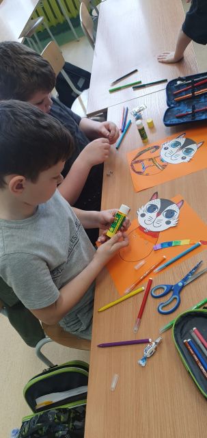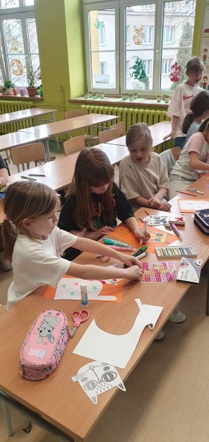 Dziś na kółku plastycznym panowała wyjątkowo twórcza atmosfera. Każdy uczestnik stworzył swojego niepowtarzalnego, kolorowego kota- Cukierka.