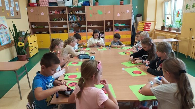 Po części teoretycznej dzieci zabrały się do pracy i powstały piękne biedronki.