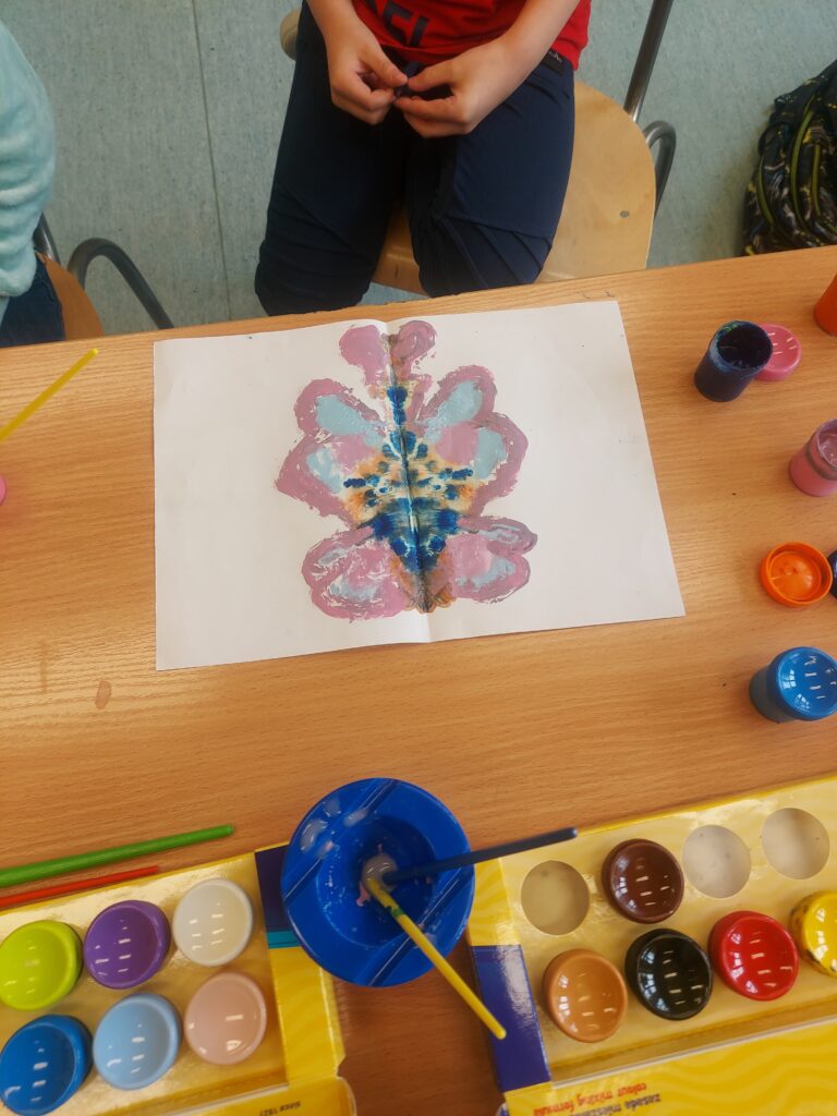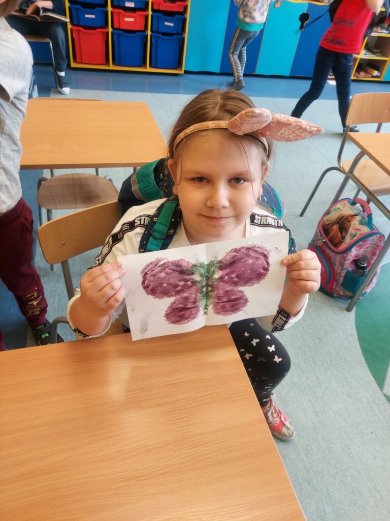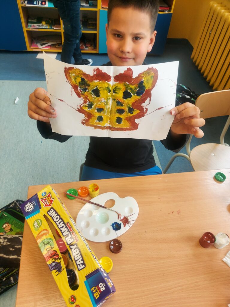 Uczniowie klasy 1a na kółku plastycznym wykonali barwne magiczne motyle.