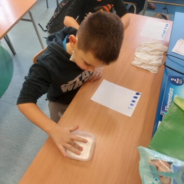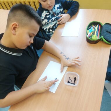 W dniu dzisiejszym na kółku przyrodniczym rozpoczęliśmy przygotowania do Ogólnopolskiego Konkursu Przyrodniczego „Świetlik”. Poznaliśmy dzisiaj czym są linie papilarne i mogliśmy dzięki doświadczeniu oglądać swoje.
