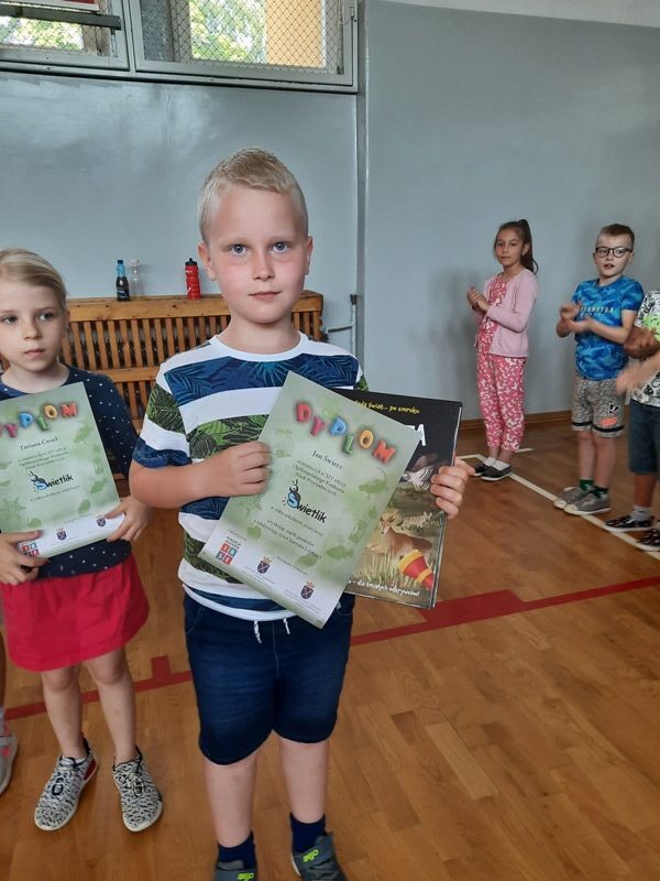 Jan Świerz uczeń klasy I Szkoły Podstawowej nr 3 im. Klementyny Tańskiej – Hoffmanowej w Oświęcimiu został laureatem krajowego konkursu „Świetlik 2021” uzyskując maksymalną ilość punktów. Za swoje osiągnięcie otrzymał nagrodę główną, którą wręczył mu w dniu 16 czerwca br. dyrektor szkoły na uroczystym apelu. Wszyscy uczestnicy otrzymali pamiątkowe dyplomy za udział w konkursie ,,Świetlik”.