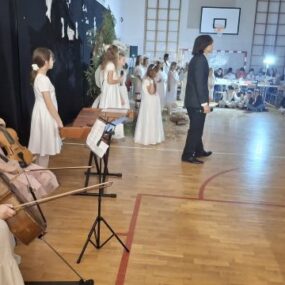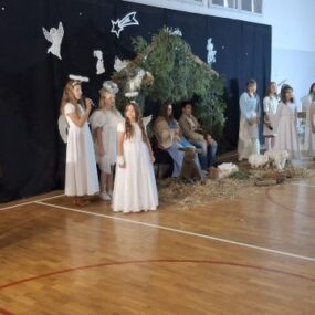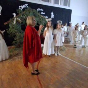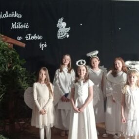 W naszej szkole odbyły się magiczne jasełka, przygotowane z ogromnym zaangażowaniem przez uczniów. Piękne występy, świąteczna scenografia i nastrojowa muzyka wprowadziły wszystkich w wyjątkowy, bożonarodzeniowy klimat. Po części artystycznej cała społeczność szkolna spotkała się na wspólnej wigilii. Był to czas rozmów, życzeń i dzielenia się radością. Nie zabrakło czegoś dla ciała – tradycyjnych, świątecznych potraw – ani dla duszy – chwili refleksji, wspólnego kolędowania i serdecznej atmosfery. To wyjątkowe spotkanie na długo pozostanie w naszej pamięci.