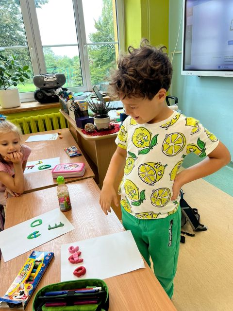Ostatni dzień przed weekendem upłynął w klasie 1b pod hasłem „Moje zmysły” Mieliśmy okazję doświadczyć wszystkich 5 zmysłów. Największe emocje wywołał smak i przyprawa do pomidorów!  Następnie utrwaliliśmy poznane litery lepiąc je z plasteliny. Mieliśmy okazję przetestować nasz zmysł dotyku i z zamkniętymi oczami odgadywaliśmy jaka to litera. Na koniec tego tygodnia zmierzyliśmy się z zadaniem napisania lub narysowania swoich mocnych stron. „Jestem super, bo… „ Jak się okazuje to nie łatwe zadanie. Łatwo zauważyć to co nam się nie udaje a trudniej to w czym jesteśmy dobrzy. Oczywiście każdy z nas znalazł w sobie chociaż jedną dobrą cechę!