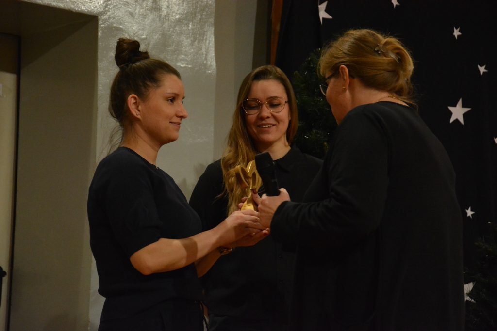 Po występie pani dyrektor złożyła wszystkim świąteczne życzenia i  symbolicznie społeczność szkolna połamała się opłatkiem i zasiadła do wspólnego stołu, by radować się nadchodzącymi Świętami Bożego Narodzenia.