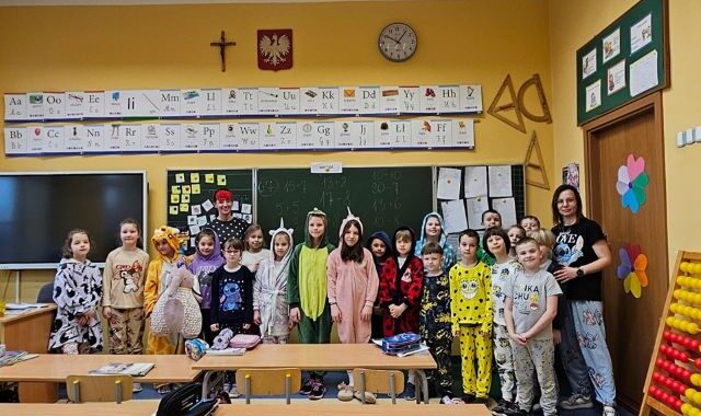 Razem z prima Aprilis, został zorganizowany „Dzień Piżamy”. Uczniowie chętnie zaangażowali się w akcję przychodząc do szkoły w stroju do spania. W tym dniu uczniowie mogli przyjść do szkoły w piżamach, z kocami i poduszkami i również z przytulankami, a lekcje polegały na relaksacji i odpoczynku.