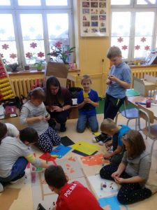 Architekt opowiadał o podstawowych zagadnieniach dotyczących architektury i urbanistyki w Oświęcimiu. Pani Karolina podała przykłady planowania i projektowania. Dzieci zastanawiały się, jak powinna wygląda i jakie pełnić funkcję idealną miejscowość lub miasto oraz co należy uwzględnić przy ich projektowaniu. Jak dobry plan i projekt mogą wpłynąć na to, by przestrzeń była przyjazna.