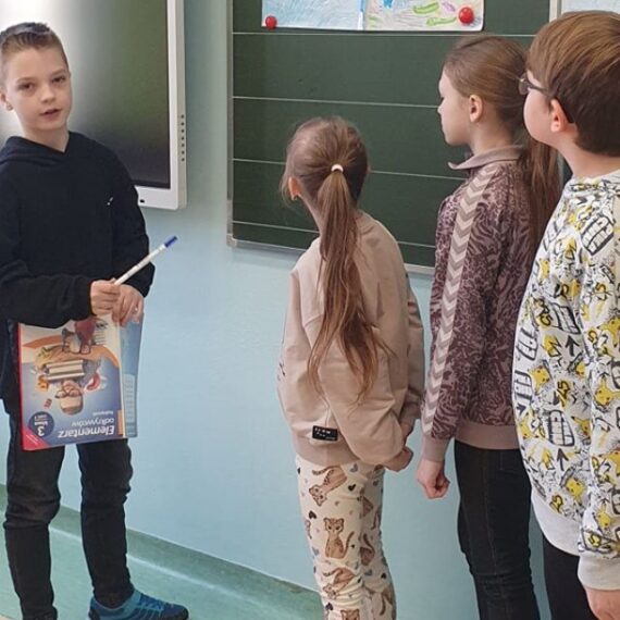 Lekcja miała formę pracy w grupach, dzięki czemu uczniowie mieli okazję współpracować, dzielić się wiedzą i umiejętnościami, a także lepiej poznać swoje mocne strony. Każda grupa zaprezentowała swoją pracę na środku klasy.