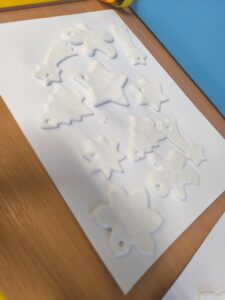 W grudniu uczniowie zrealizowali kolejne zadanie z projektu Zabawa Sztuką. Dzieci wykonały ozdoby na choinkę z masy porcelanowej.