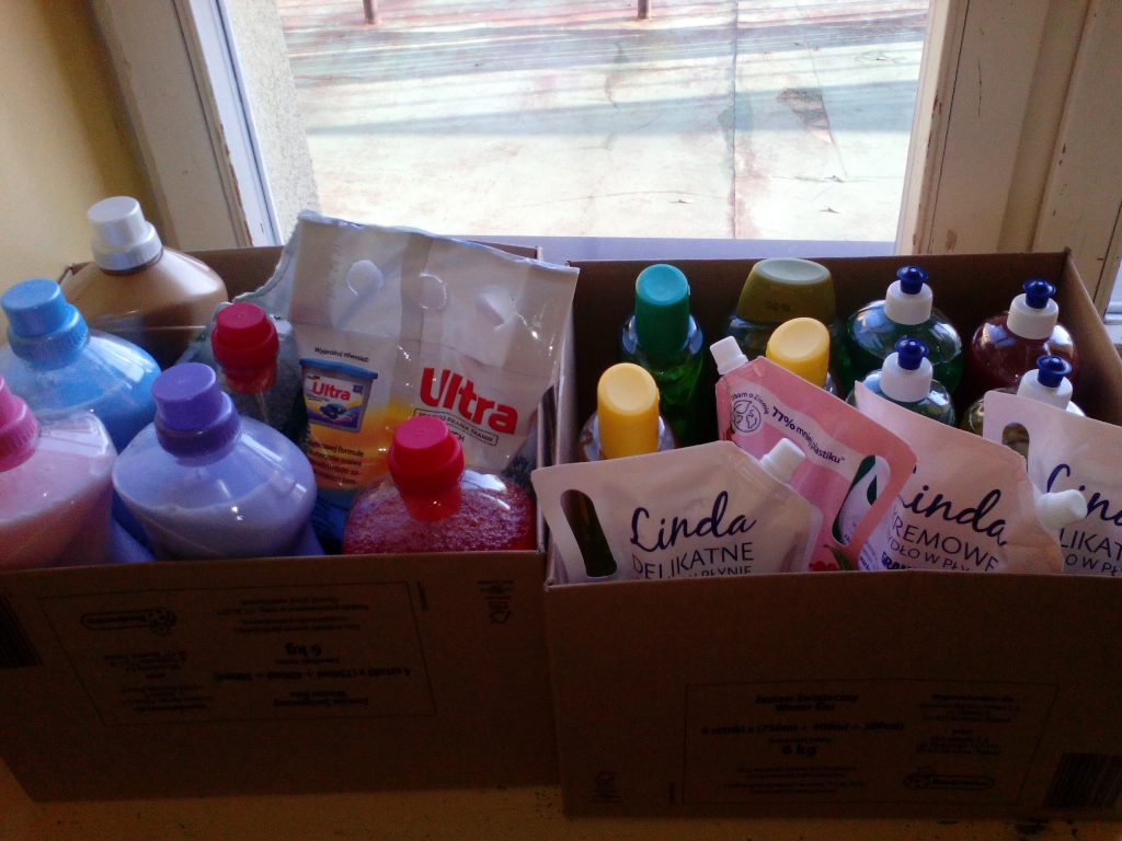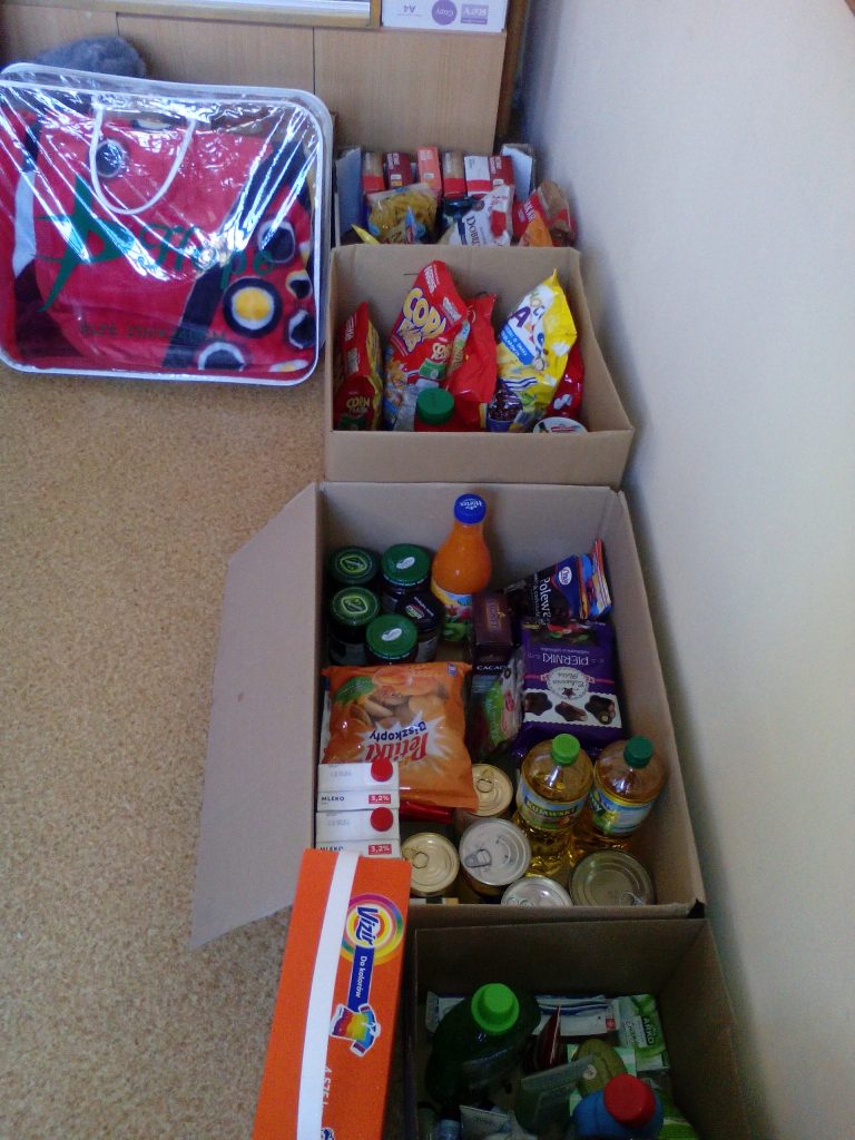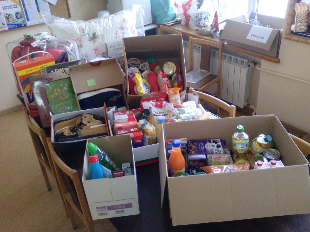 Wybraną rodzinę obdarowaliśmy produktami żywnościowymi, słodyczami, środkami czystości.