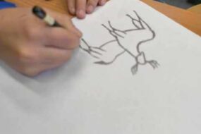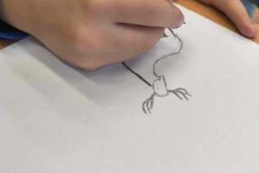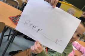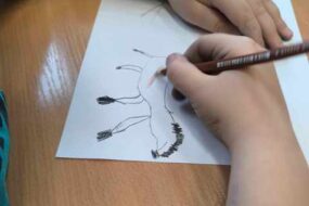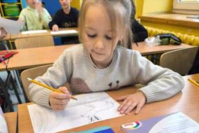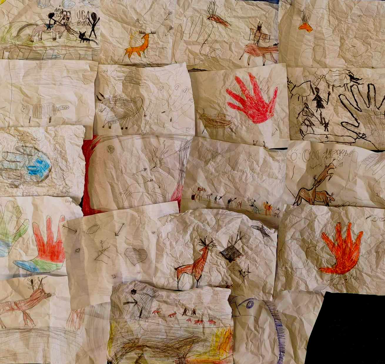 Uczniowie klasy drugiej zrealizowali kolejne zadanie z projektu ,,zabawa sztuką” i zapoznali się ze sztuką prehistoryczną. Każdy wykonał własny projekt malarstwa naskalnego na kawałku zmiętej kartki, która emitowała teksturę skały. Następnie powstała wspólna galeria dzieł.