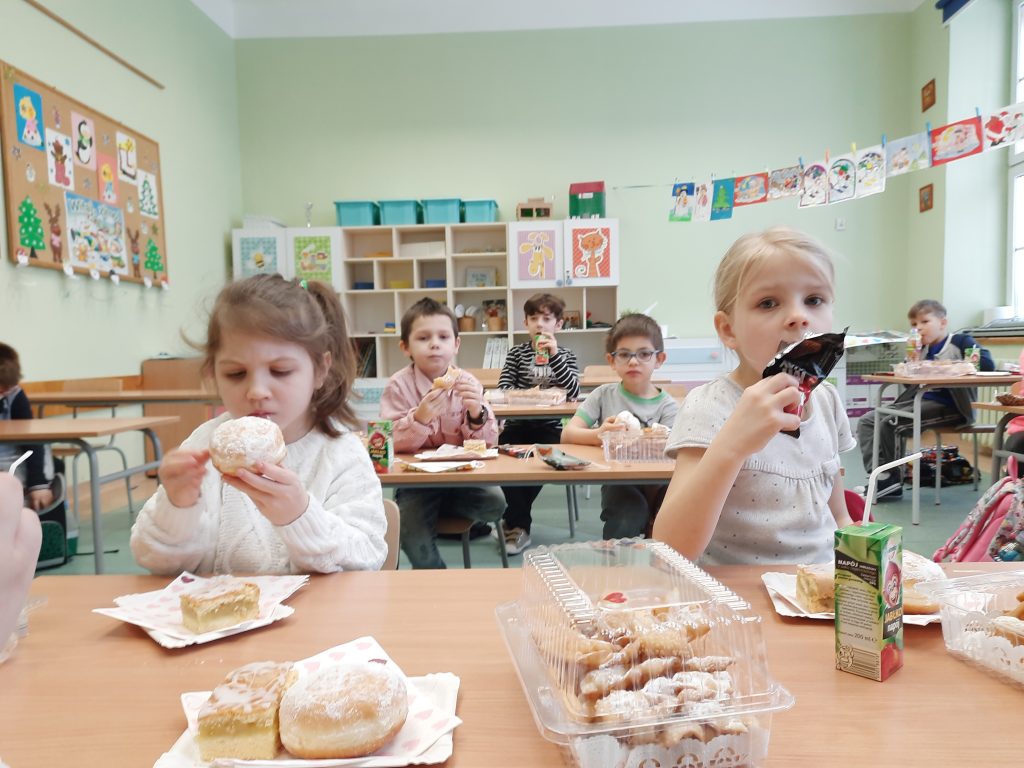 W dniu 11 lutego 2021r. w naszej szkole jak zwykle tłusty czwartek minął na słodko z pysznymi pączkami. Wszyscy  uczniowie obchodzili tłusty czwartek zgodnie z tradycją, kosztując przepysznych smakołyków.