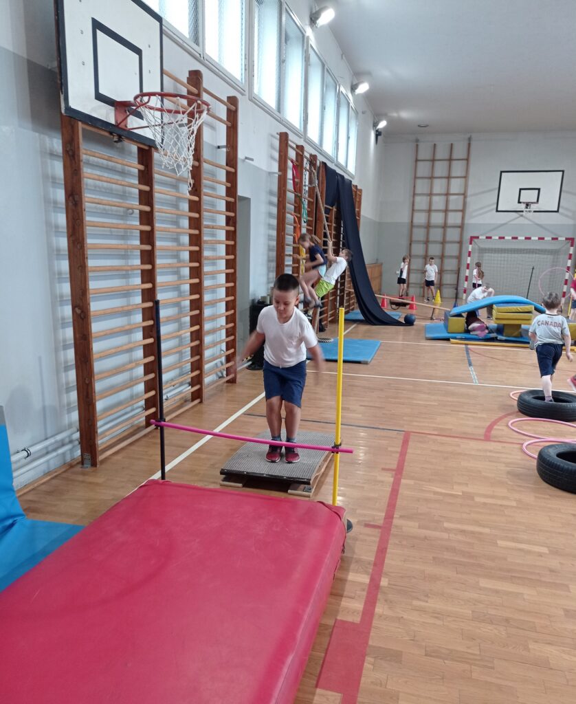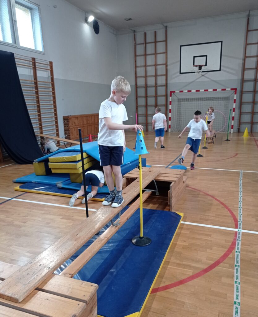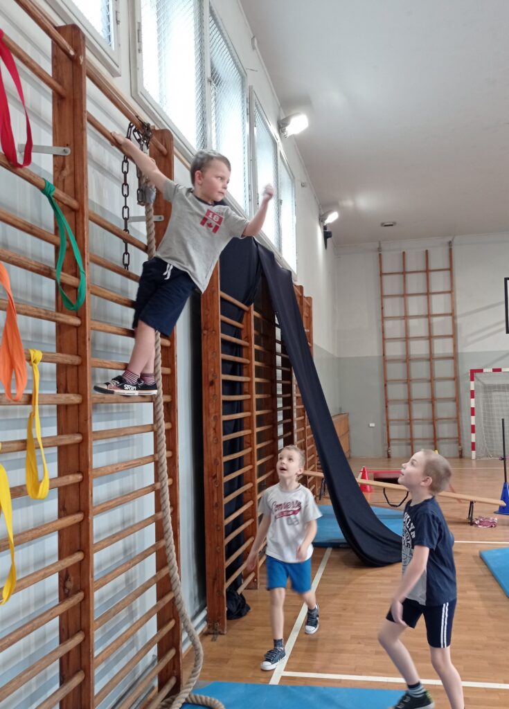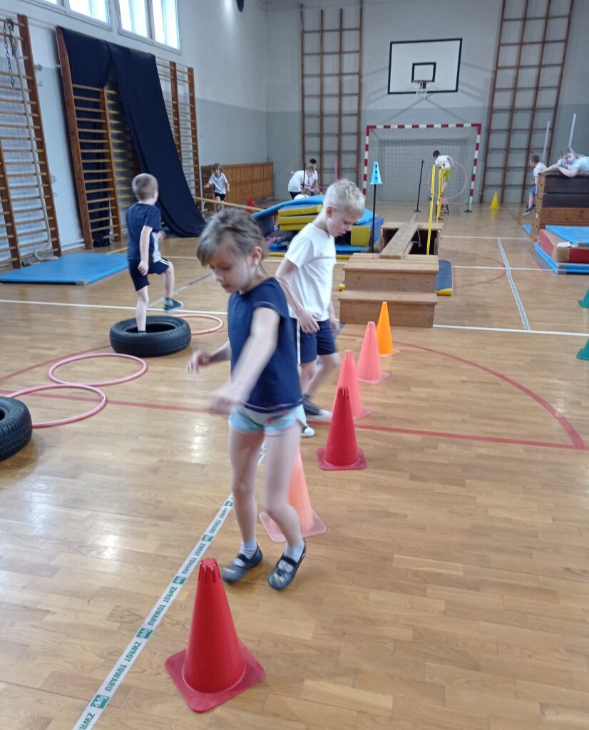 Podczas zajęć sportowych nie brakuje aktywnej zabawy na torze przeszkód. Rozwijamy swoją koordynację ruchową i w pozytywny sposób użytkujemy naszą energię.