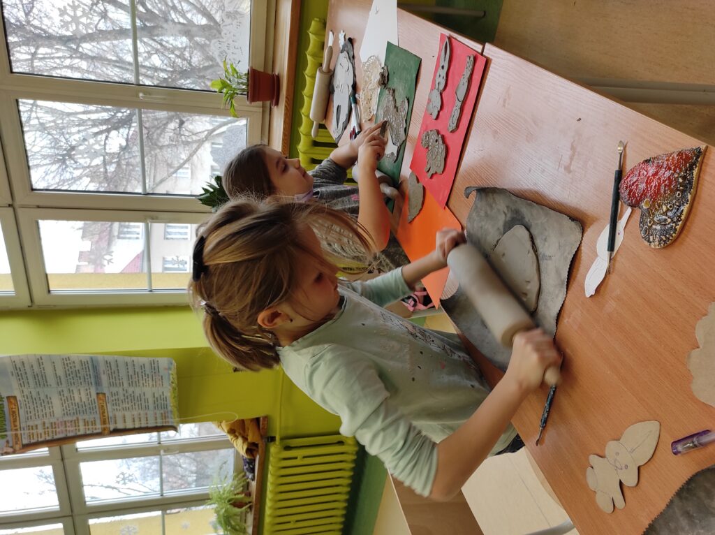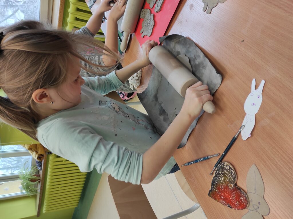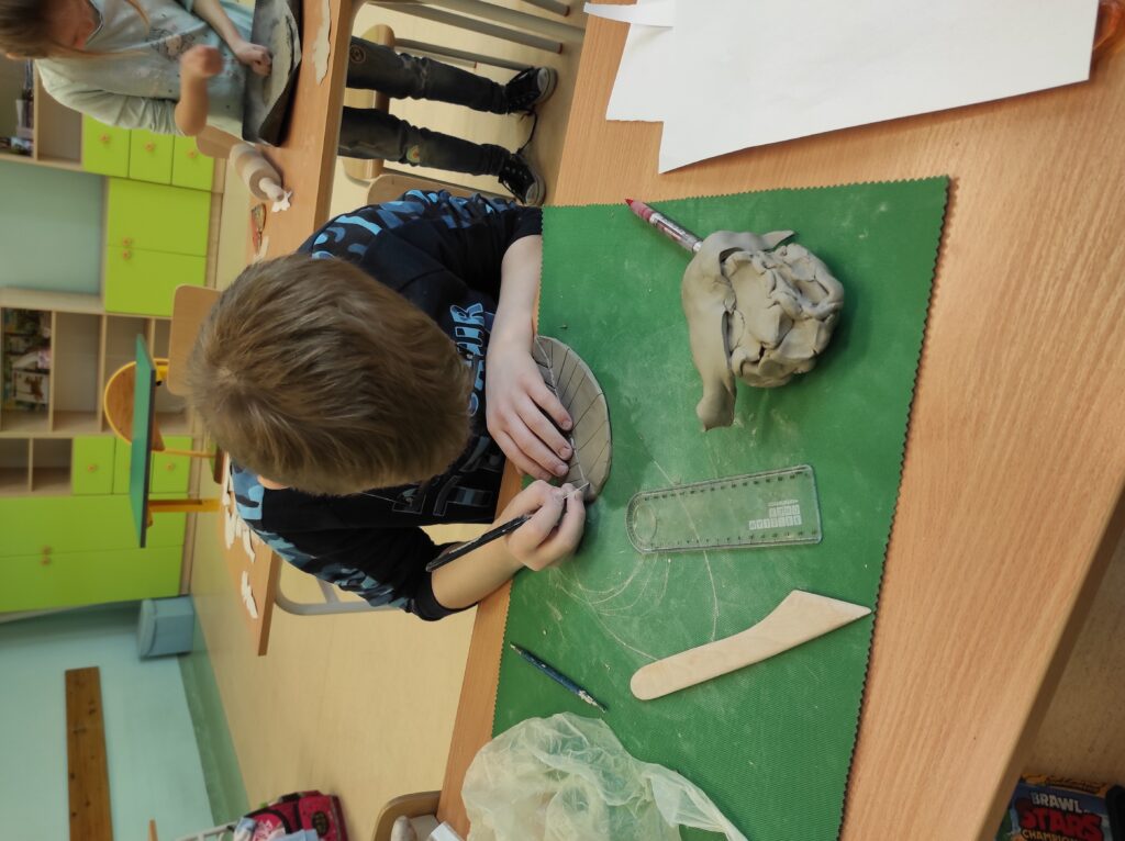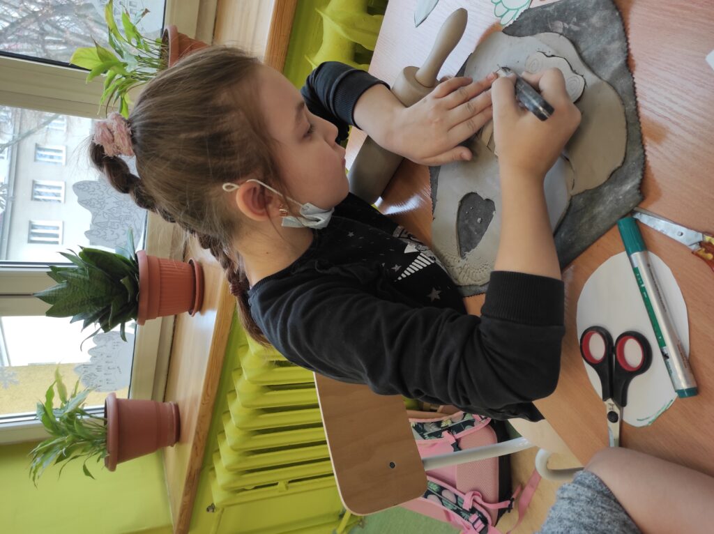 Uczniowie klasy drugiej brali udział w warsztatach ceramicznych. Podczas zajęć zgodnie z instrukcją tworzyli figurki z gliny według zaprezentowanych szablonów oraz własnych pomysłów. Praca była twórcza i pełna pozytywnej energii.