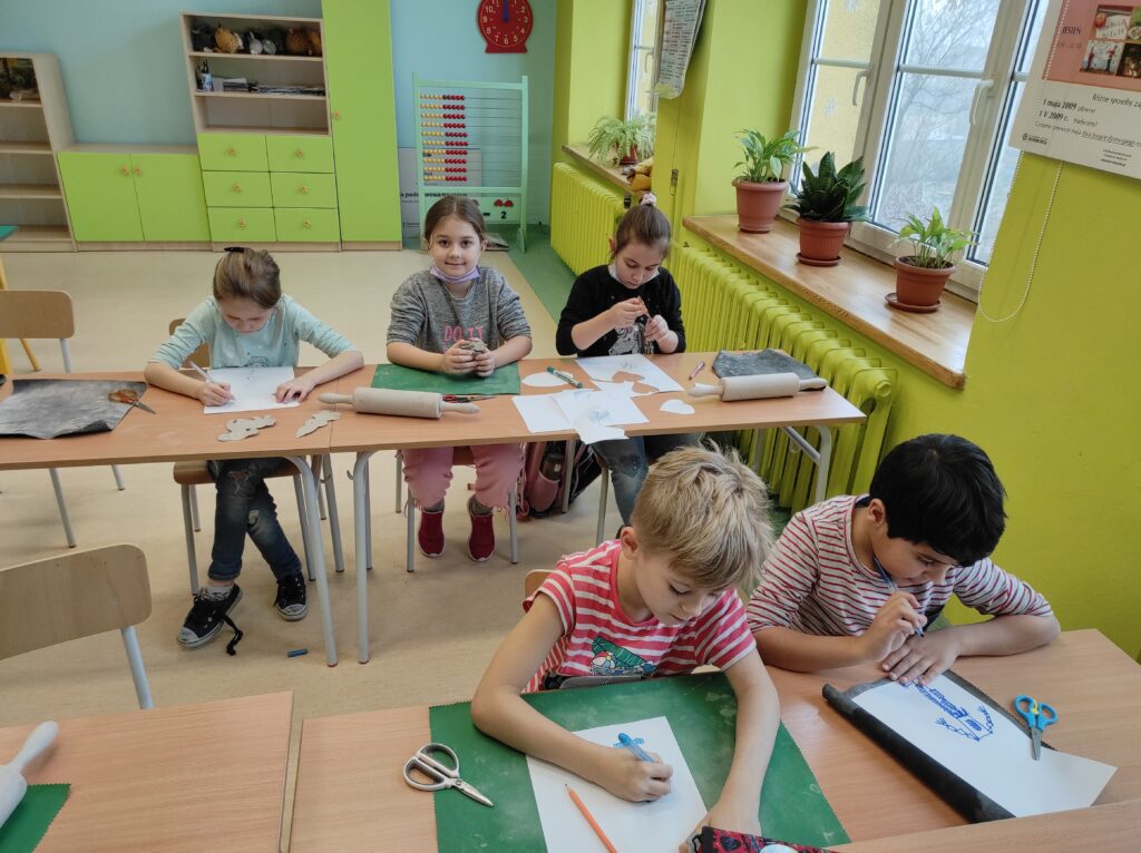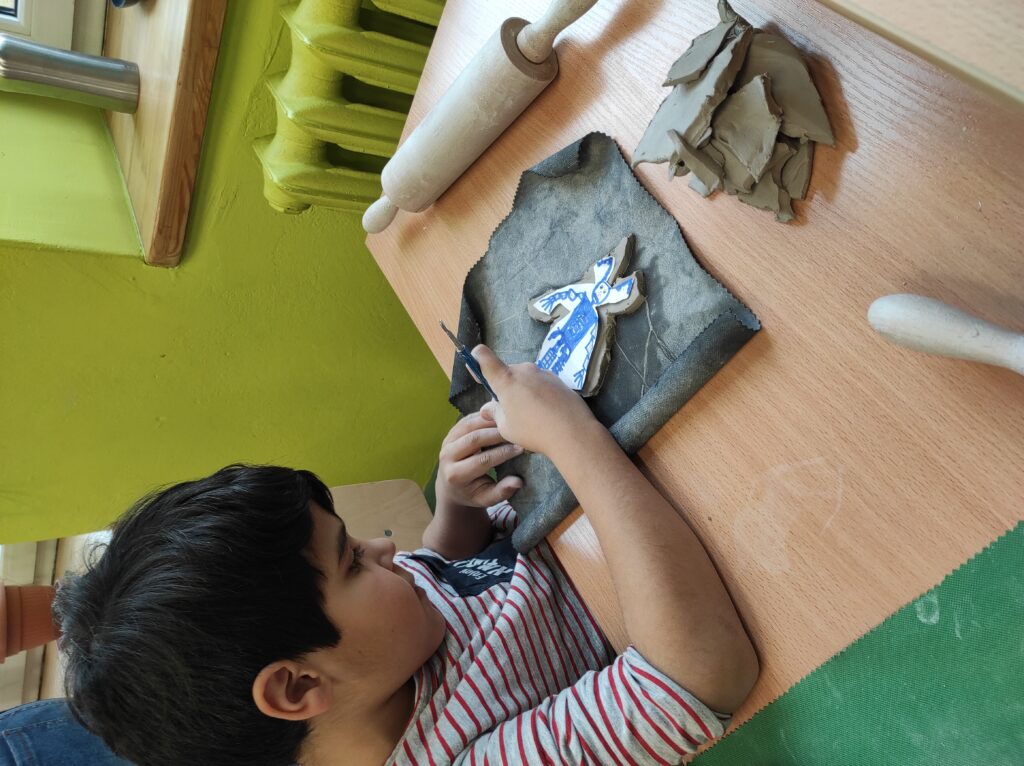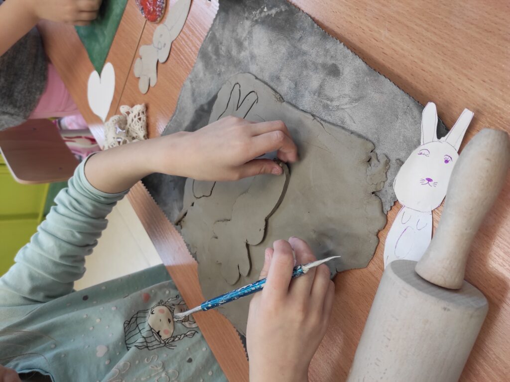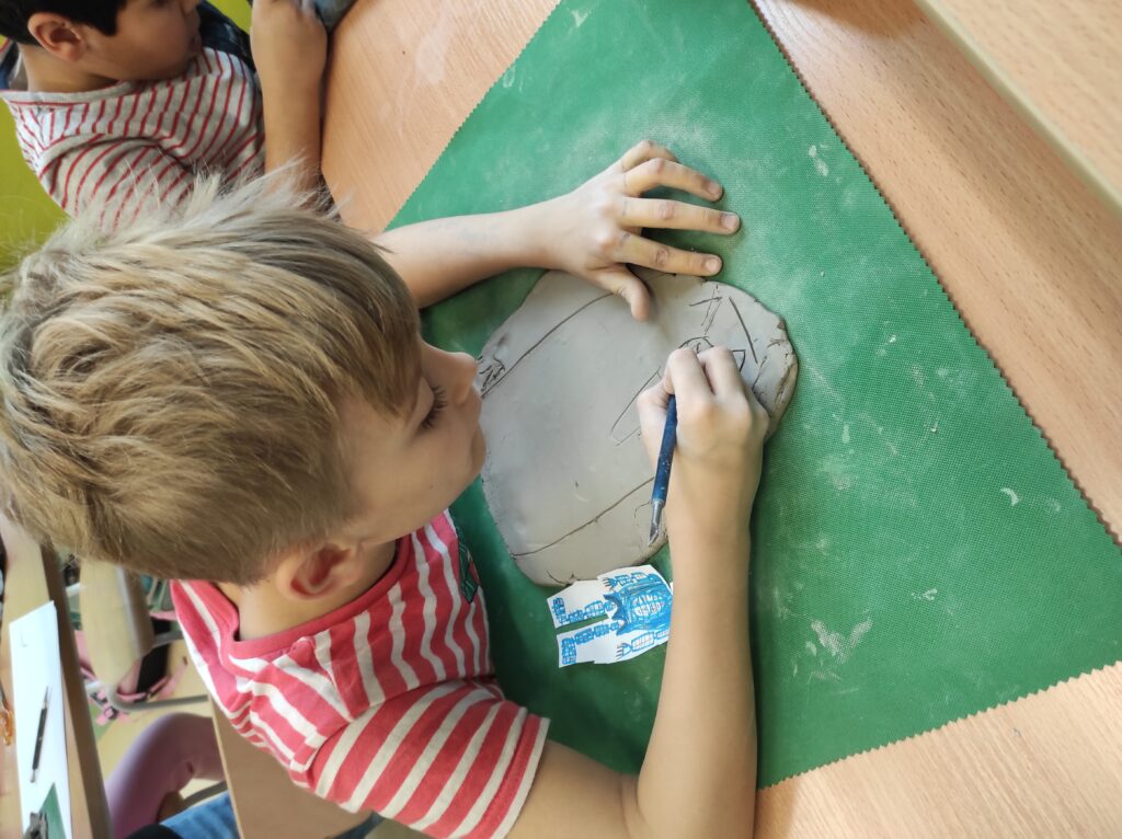 Uczniowie klasy drugiej brali udział w warsztatach ceramicznych. Podczas zajęć zgodnie z instrukcją tworzyli figurki z gliny według zaprezentowanych szablonów oraz własnych pomysłów. Praca była twórcza i pełna pozytywnej energii.