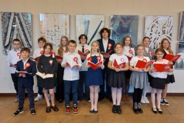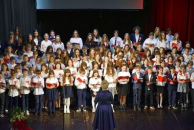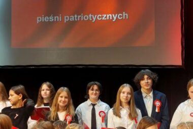 W ramach obchodów Święta Niepodległości, jak co roku, wzięliśmy udział we Wspólnym Śpiewaniu Polskich Pieśni Patriotycznych. Koncert miał miejsce 7 listopada 2025 r. w sali widowiskowej Oświęcimskiego Centrum Kultury. Naszą szkołę reprezentował „wykruszony” skład koła wokalnego (szczególne gratulacje dla naszych debiutantów – Mikołaja i Wiktora) wraz z przedstawicielami klas starszych (w tym przewodniczącą szkoły, Antoniną Świerz, a także radnym Młodzieżowej Rady Miasta Oświęcim, Igorem Kaczorem). Brawa dla wszystkich wokalistów!