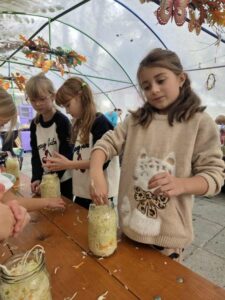 21 października klasy pierwsze wybrały się na wyjątkową wycieczkę do Gospodarstwa Edukacyjnego „Zosia” w Bieruniu. Podczas pobytu dzieci miały okazję poznać mieszkańców gospodarstwa – m.in. strusie i owce, którym mogły samodzielnie podać jedzenie. Wzięły także udział w warsztatach kiszenia kapusty, gdzie dowiedziały się, jakie są rodzaje kapusty i jak przygotować ją do kiszenia.
