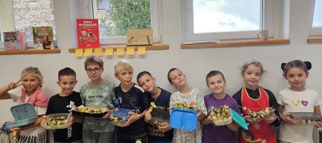 Uczniowie klas I–III rozpoczęli kolejny cykl kulinarnych spotkań. Tym razem dzieci przygotowały owocowe szaszłyki z polewą z gorzkiej czekolady.