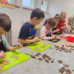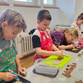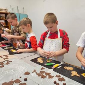 Zajęcia kulinarne – pierniczki i lukry Podczas ostatnich zajęć kulinarnych uczestnicy mieli okazję przygotować tradycyjne pierniczki oraz poznać techniki dekorowania ich lukrem. Zajęcia rozwijały umiejętności kulinarne, kreatywność oraz precyzję, a także sprzyjały współpracy i cierpliwości. Efektem pracy były pachnące wypieki. Uczestnicy zajęć kulinarnych życzą pachnących świąt!