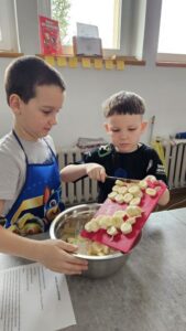 Podczas kolejnych zajęć kulinarnych uczniowie przygotowali owocowy koktajl z wysokobiałkowym serkiem wiejskim – zdrowy, pyszny i pełen wartości odżywczych.